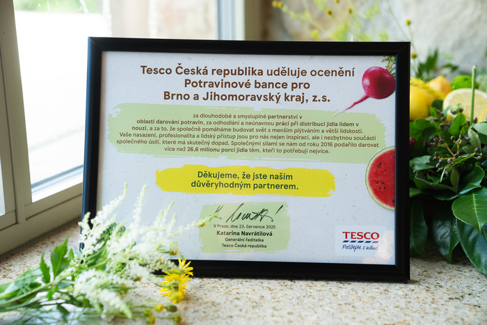 Děkujeme za krásné odpoledne, získané ocenění od společnosti Tesco a hlavně za dosavadní spolupráci. Tesco darovalo Potravinovým bankám pro lidi v nouzi od roku 2016 již více než 26 milionů porcí jídla.